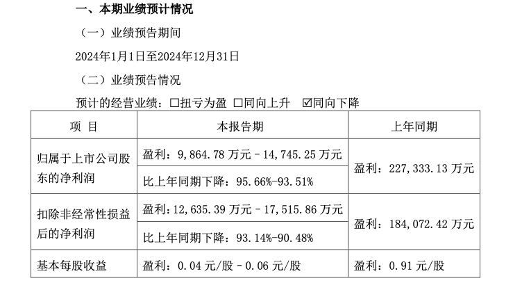 1月17日晚间东方雨虹公告披露,预计2024年净利润9864.78万元–1.47亿元,比上年同期下降93.51%-95.66%。